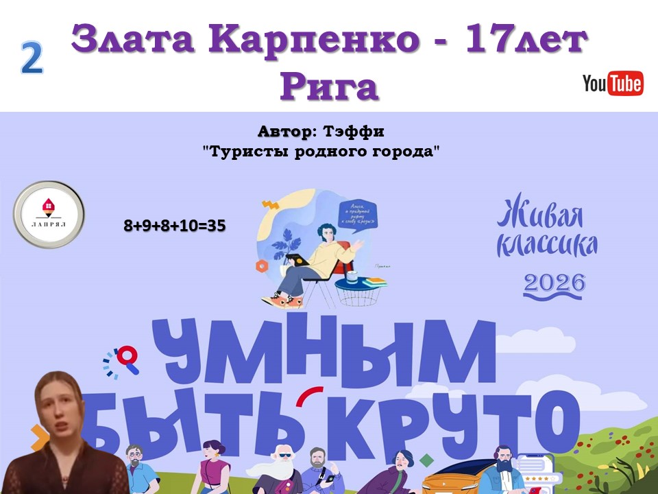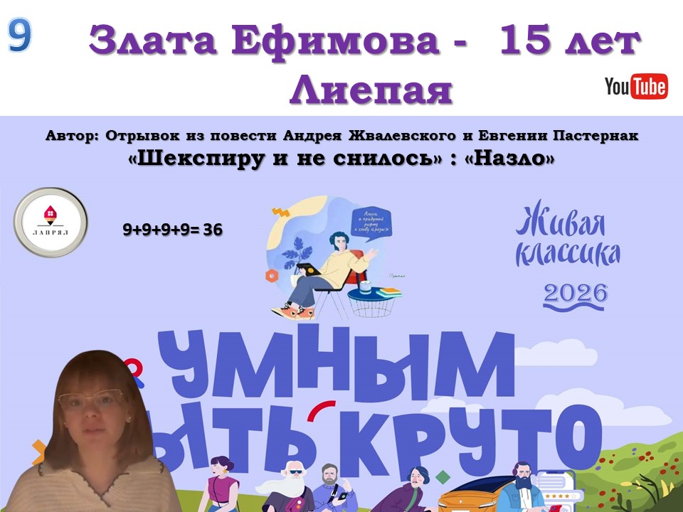 · Злата Ефимова (Лиепая), 15 лет. Отрывок из повести Андрея Жвалевского и Евгении Пастернак «Шекспиру и не снилось» / «Назло»