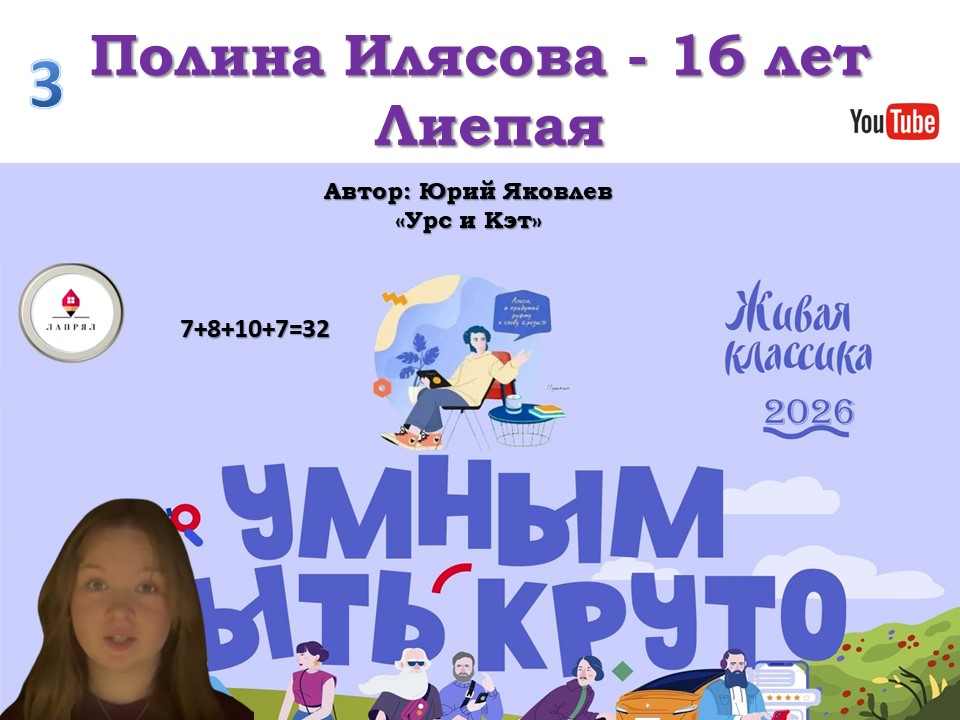 · Полина Илясова (Лиепая), 16 лет. Выступает вне конкурса. Юрий Яковлев. «Урс и Кэт»